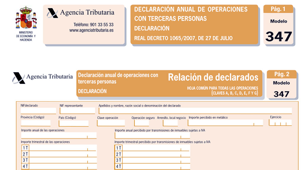 El Modelo 347 es la declaración de operaciones con terceros, es un modelo informativo, es decir, no supone el pago o devolución de importe alguno.
